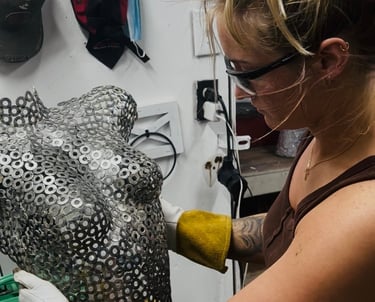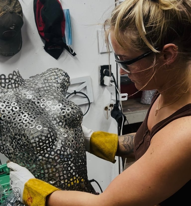 My name is Trinity Elliott, and I am the founder and metal sculptor behind A Spark of Creation Studio. I’m based in a small town in East Tennessee, where I work alone in a small, working studio, shaping raw steel into sculptures that tell stories about strength, survival, and our connection to the land we come from.